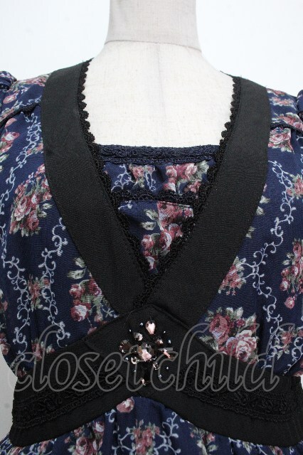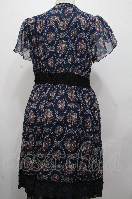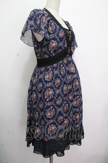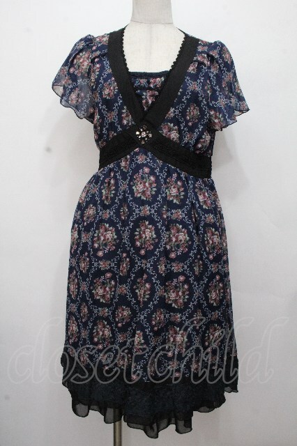 axes femme / バラオーナメントフレームワンピース 紺 S-26-04-24-051-AX-OP-HR-ZS