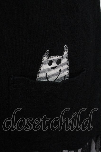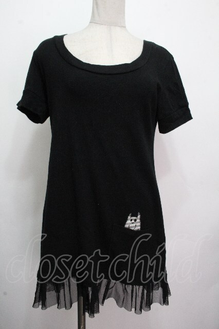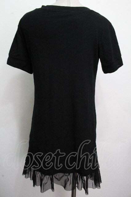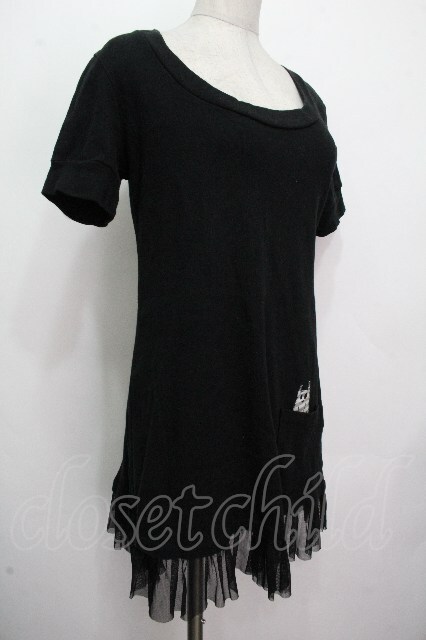 PEACE NOW / 刺 入り裾チュール半袖カットソー 黒 S-26-04-24-052-PU-TO-HR-ZS