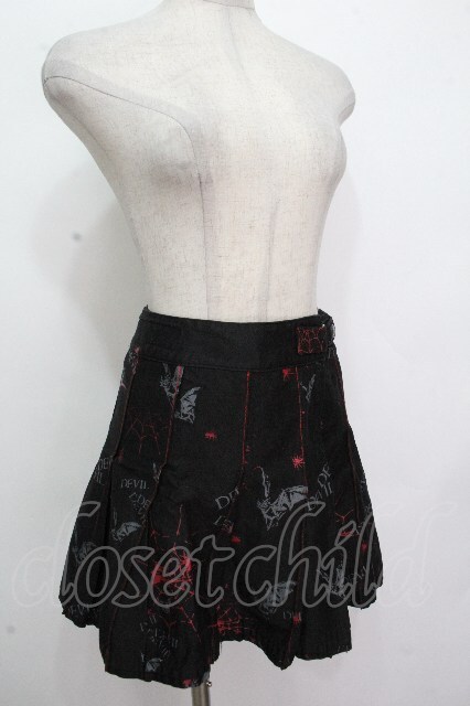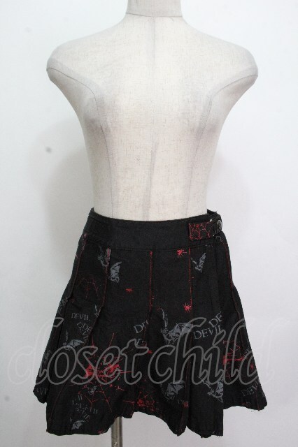 Channel H / プリントプリーツデニムスカート 黒z赤 S-26-04-24-059-HN-SK-HR-ZS