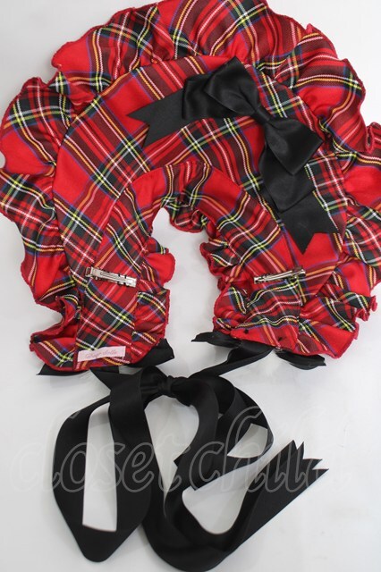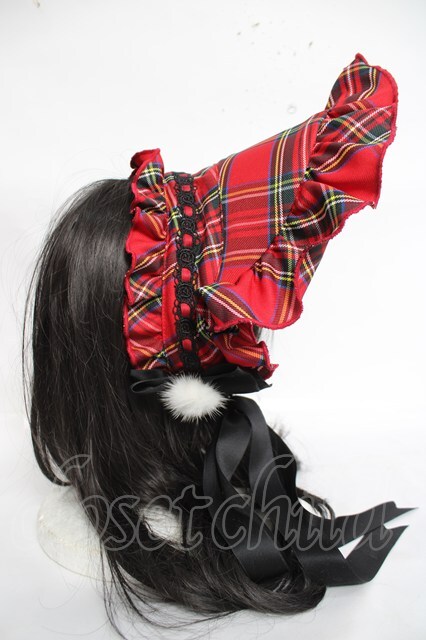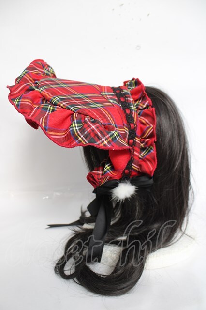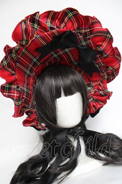 Doll Paradise / 黒リボン×チェックハーフボンネット 赤 Y-26-04-27-022-LO-AC-SZ-ZY