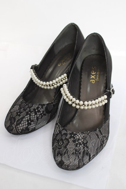 axes femme / パールストラップパンプス L 黒 Y-26-04-27-047-AX-SH-SZ-ZY