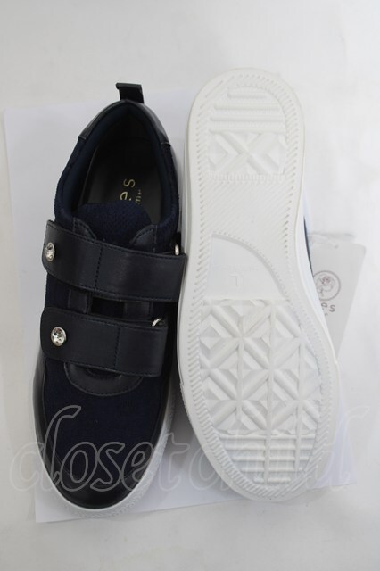 axes femme / レース使いベルクロスニーカー L ネイビー Y-26-04-27-051-AX-SH-SZ-ZY