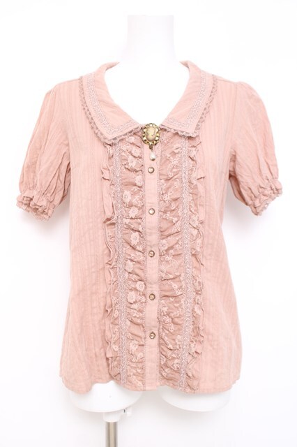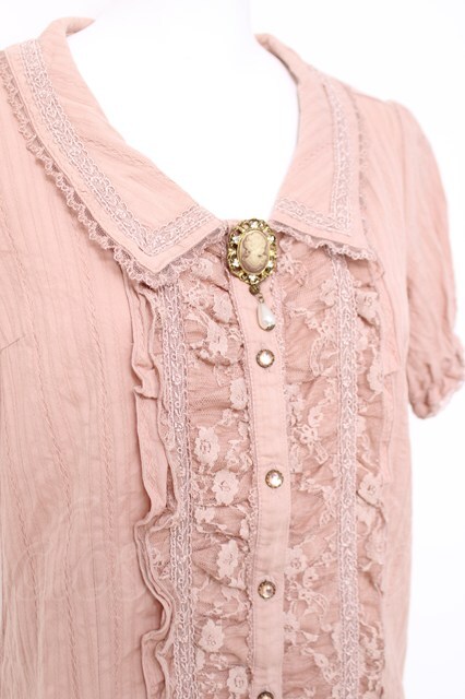 axes femme / レース配色シャドーストライプブラウス L 淡ピンク Y-26-04-27-079-AX-BL-SZ-ZY