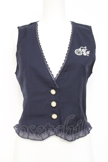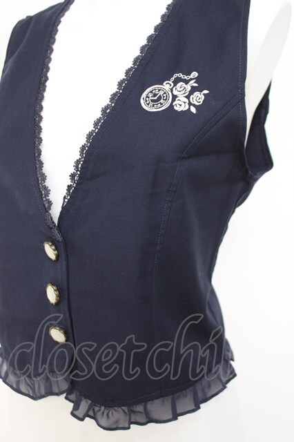 axes femme POETIQUE / 懐中時計刺繍ベスト M 紺 Y-26-04-27-085-AX-TO-SZ-ZY
