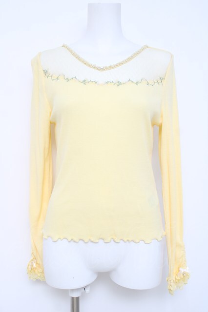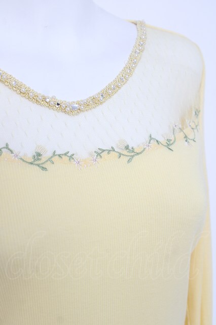 axes femme / 花刺繍レースカットソー イエロー Y-26-04-27-090-AX-TO-SZ-ZY