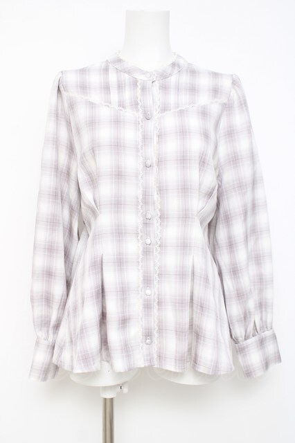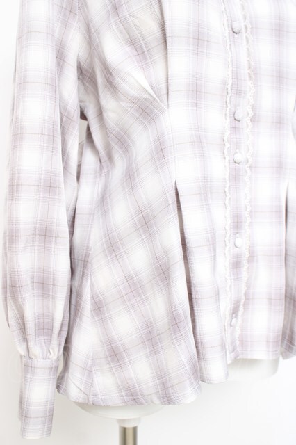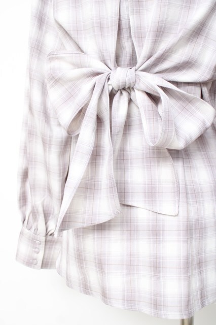 axes femme POETIQUE / チェックバックリボンブラウス ラベンダー Y-26-04-27-111-AX-BL-SZ-ZY