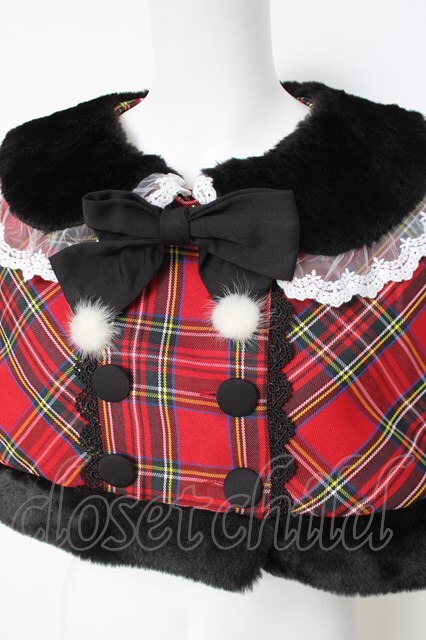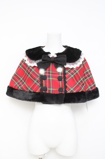 Doll Paradise / ファー使いタータンチェックケープ S 赤 Y-26-04-27-124-LO-JA-SZ-ZY
