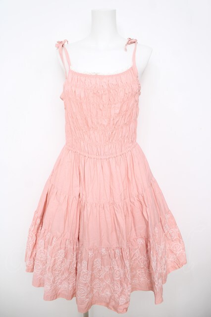 Emily Temple cute / 裾バラ刺繍キャミワンピース ピンク Y-26-04-27-155-ET-OP-SZ-ZY