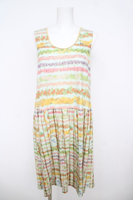 Cherir la femme / フラワーボーダーブラウジングワンピース M サックス Y-26-04-27-163-LO-OP-SZ-ZY