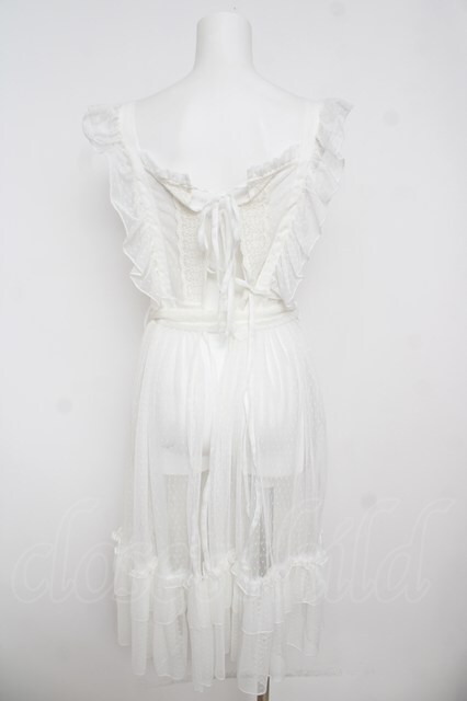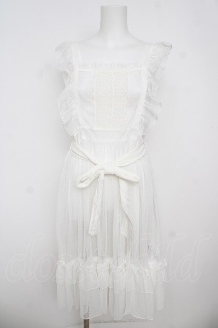 axes femme kawaii / ドットチュールエプロン M 白 Y-26-04-27-174-AX-OP-SZ-ZY
