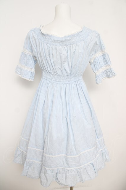 Emily Temple cute / ストライプ柄シャーリングワンピース サックス Y-26-04-27-181-ET-OP-SZ-ZY
