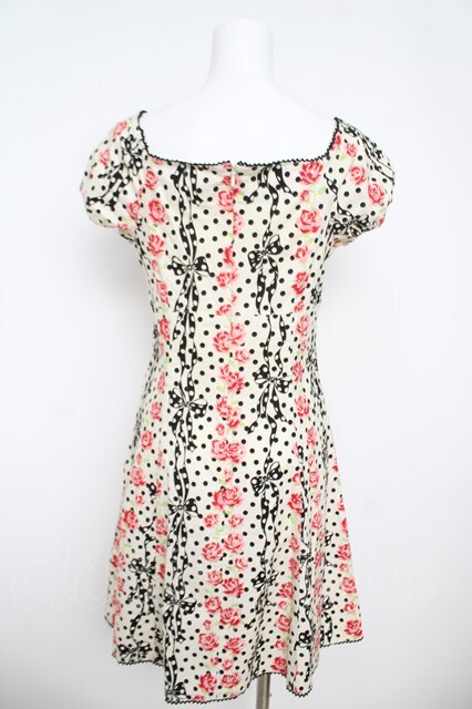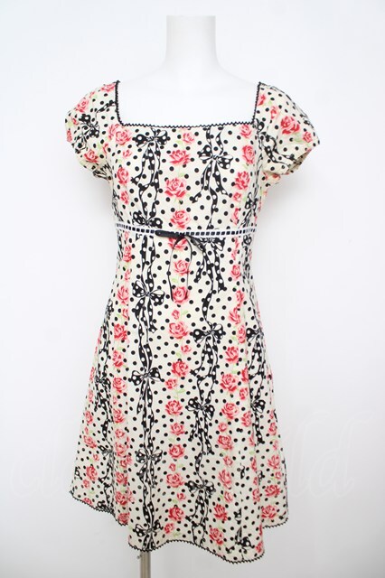 Emily Temple cute / バラ&ドットリボンワンピース オフ白 Y-26-04-27-182-ET-OP-SZ-ZY