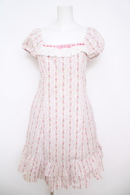 Emily Temple cute / ローズ×ストライプワンピース ピンク Y-26-04-27-186-ET-OP-SZ-ZY