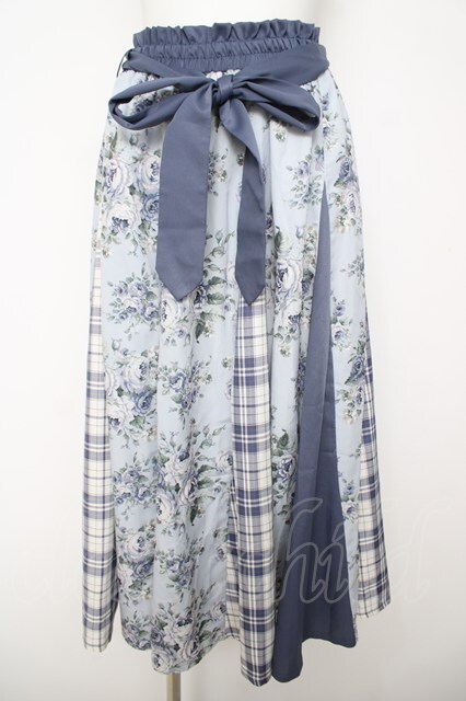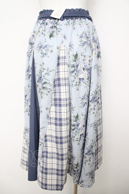 axes femme / 花柄×チェック柄切替スカート サックス Y-26-04-27-228-AX-SK-SZ-ZY