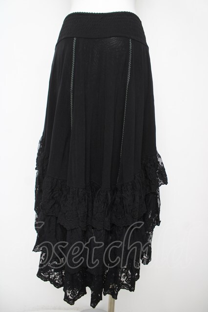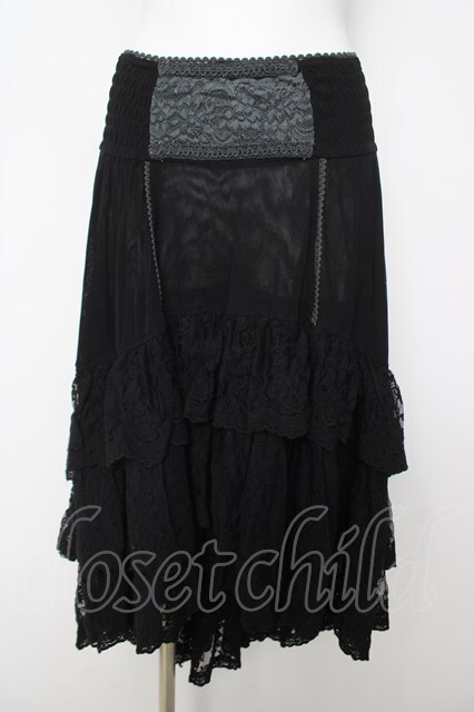 OZZ ANGELO / ウエスト刺繍レースフィッシュテールスカート 黒 Y-26-04-27-230-OO-SK-SZ-ZY