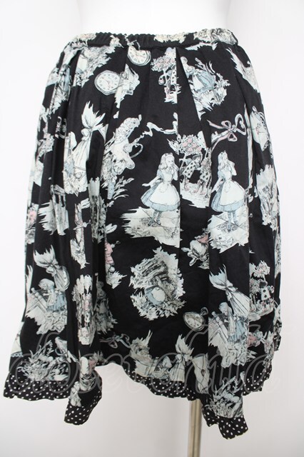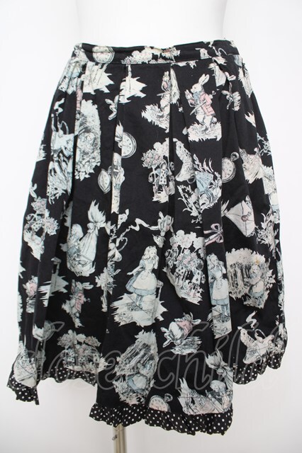 Emily Temple cute / アリスプリントスカート 黒 Y-26-04-27-237-ET-SK-SZ-ZY