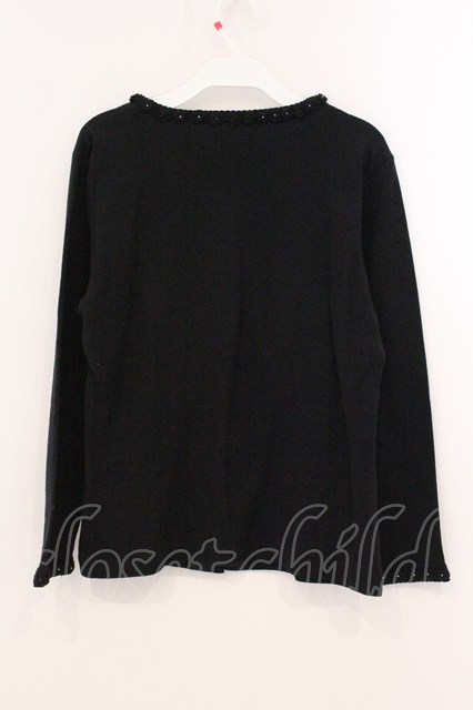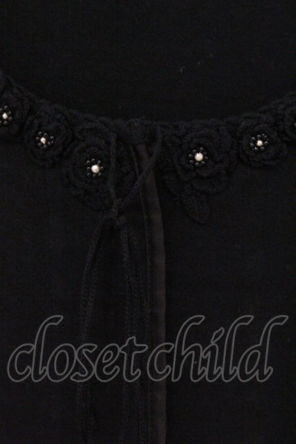 INGEBORG / フラワーモチーフネックカットソー S クロ4 O-26-04-24-1038-LO-TO-IG-OS