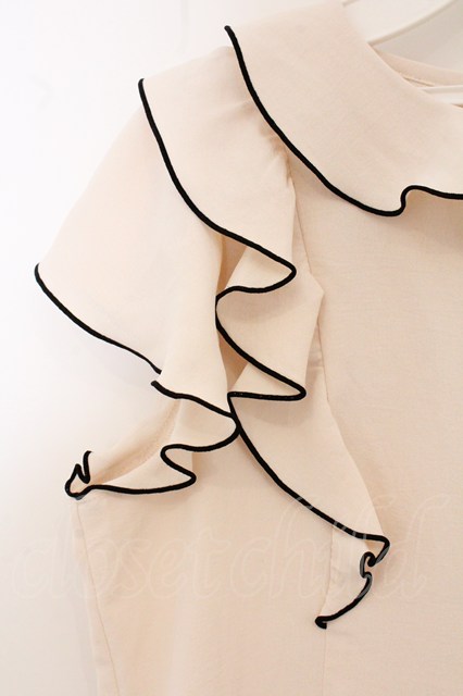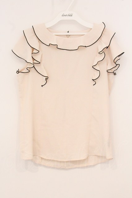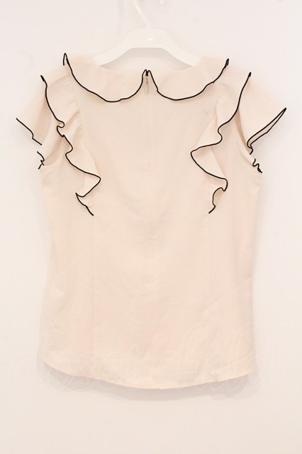F&A / 配色メローフリルスリーブブラウス ベージュ×クロ O-26-04-24-1065-LO-BL-IG-OS