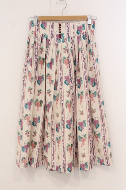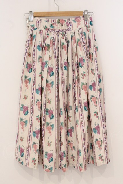 an another angelus / ヴィンテージフルーツストライプ柄スカート オフシロ×ラベンダー O-26-04-24-1048-CA-SK-IG-OS