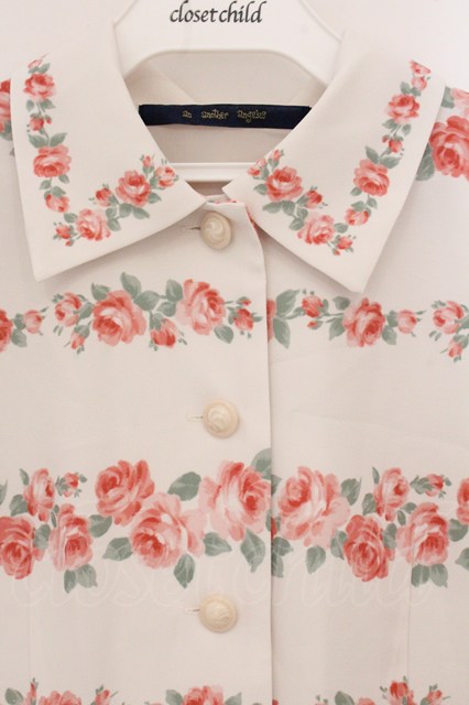 an another angelus / ローズボーダープリントノースリーブワンピース アイボリー O-26-04-24-1079-CA-OP-IG-OS