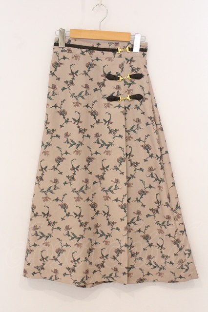 an another angelus / ビット使いヴィンテージ花柄スカート ベージュ O-26-04-24-1088-CA-OP-IG-OS