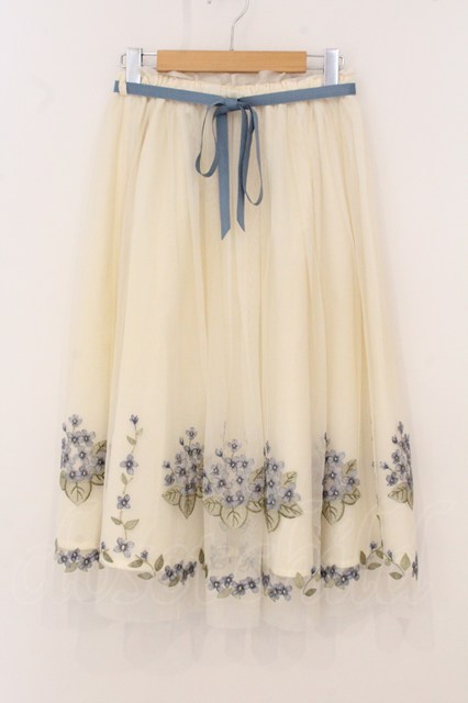 an another angelus / ライラック刺繍チュールスカート シロ×ブルー O-26-04-24-1057-CA-SK-IG-OS