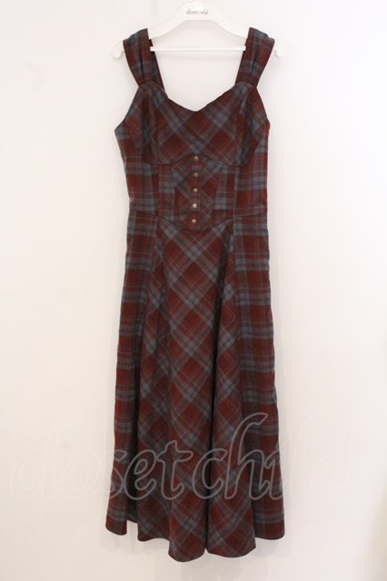 an another angelus / ビスチェチェックワンピース ワイン×ブルー系 O-26-04-24-1049-CA-OP-IG-OS