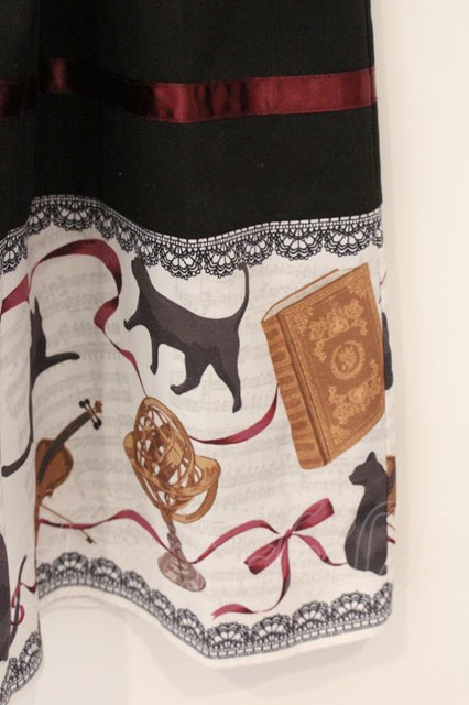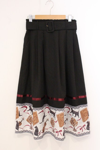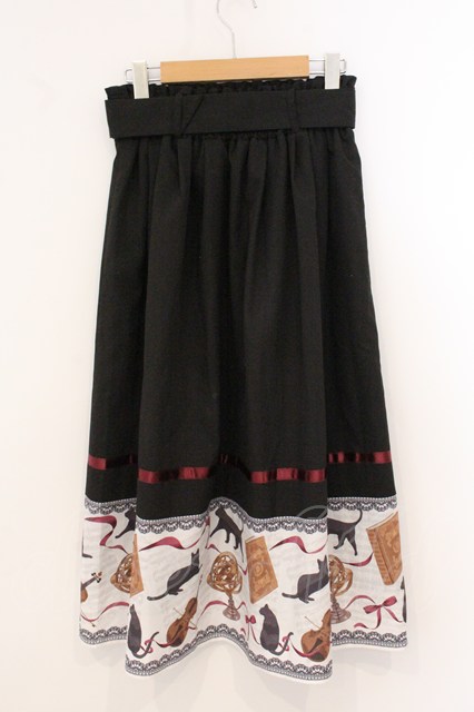 axes femme / ネコ柄パネルスカート M クロ O-26-04-24-1023-AX-SK-IG-OS