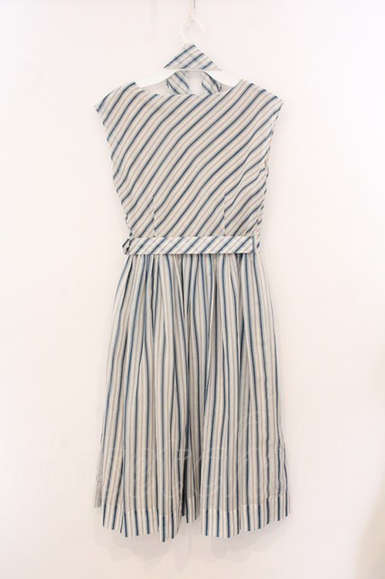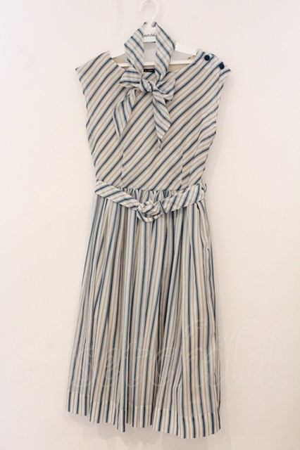 an another angelus / スカーフ付きマルチストライプワンピース アイボリー×ブルー系 O-26-04-24-1062-CA-OP-IG-OS