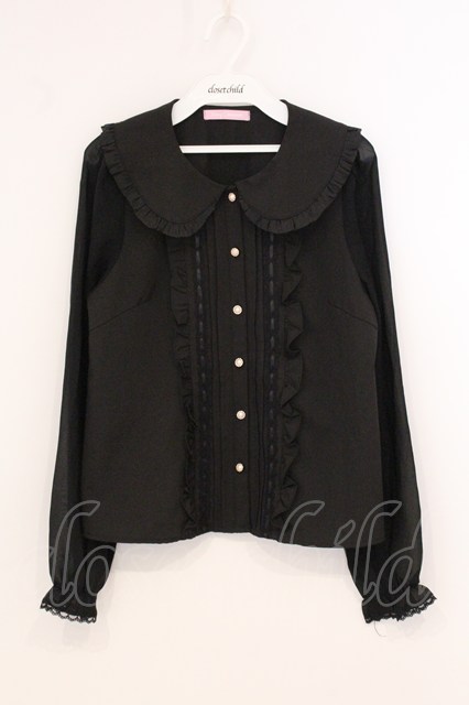 Honey Cinnamon / フリル丸襟ブラウス クロ O-26-04-24-1006-LO-BL-IG-OS [2100080000081207-O-26-04-24-1006-LO-BL-IG-OS]