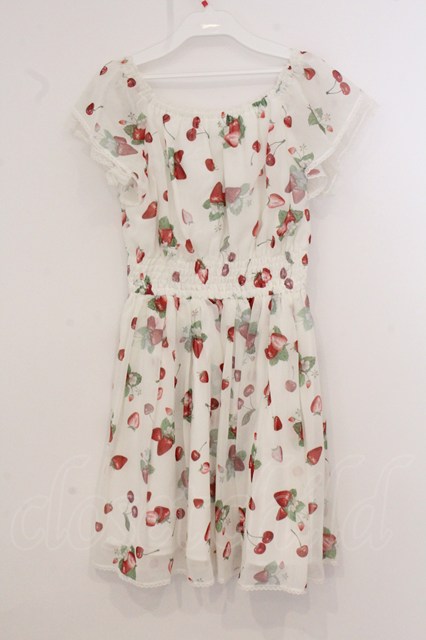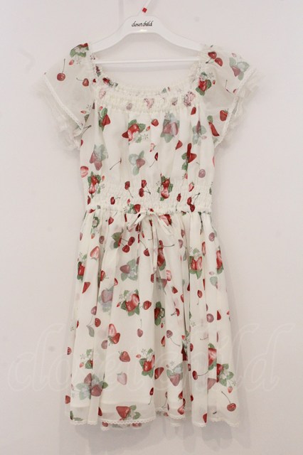Secret Honey / いちごとさくらんぼシフォンワンピース 2 シロ O-26-04-25-016-CA-OP-OW-OS