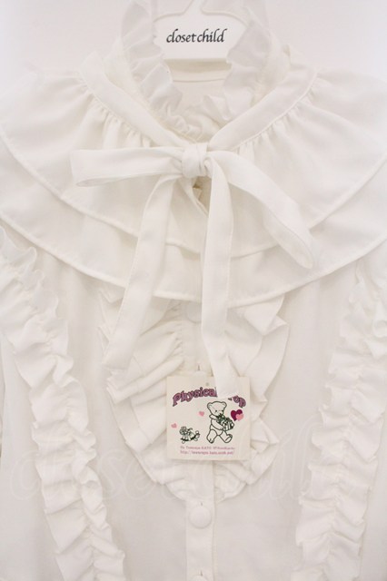 Physical Drop / ケープ衿付きスタンドカラーブラウス(姫袖) シロ O-26-04-25-003-LO-BL-OW-OS