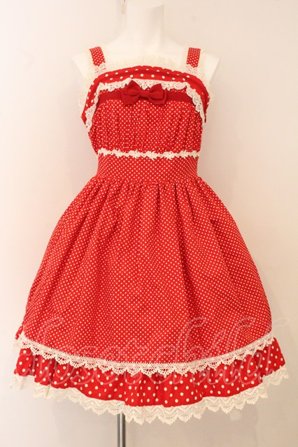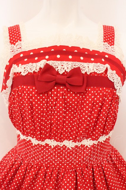 BABY,THE STARS SHINE BRIGHT / ドットRibbonジャンパースカート Aタイプ・えんじ×オフシロレース O-26-04-25-026-BA-OP-OW-OS