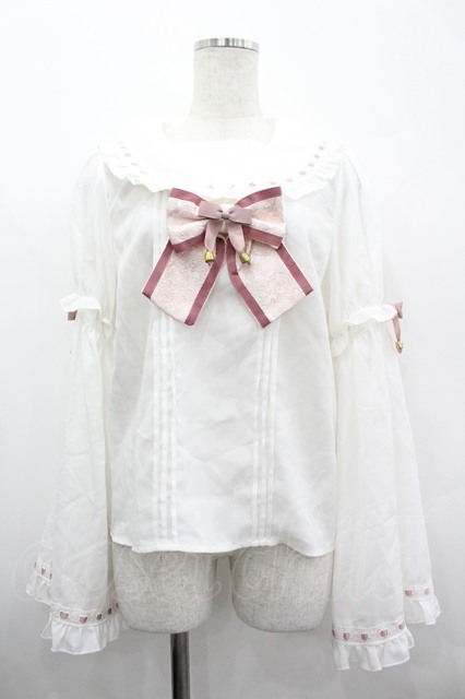 Amavel / 春爛漫の蝶々結びブラウス 白Xピンク I-26-04-24-001-CA-BL-SA-ZI [2100060000054627-I-26-04-24-001-CA-BL-SA-ZI]