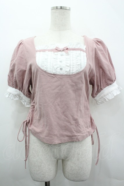 DearMyLove / フリルリボンカットソー L ピンクX白 I-26-04-24-003-EL-TO-SA-ZI