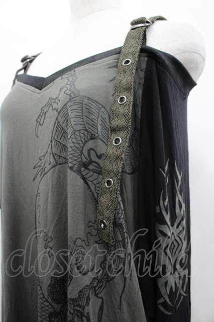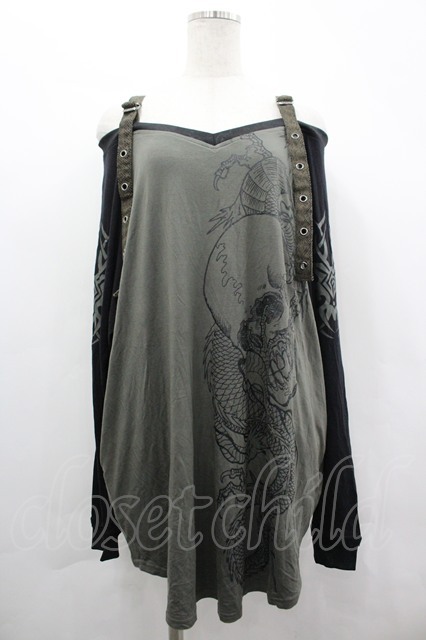 Qutie Frash / 龍プリントラグランカットソー 黒Xカーキ I-26-04-24-019-QU-TO-SA-ZI [2100060000054674-I-26-04-24-019-QU-TO-SA-ZI]