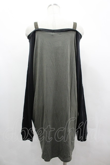 Qutie Frash / 龍プリントラグランカットソー 黒Xカーキ I-26-04-24-019-QU-TO-SA-ZI
