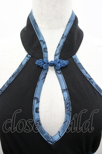 Qutie Frash / シフォン切替チャイナボタンホルターネックトップス 黒X青 I-26-04-24-020-QU-TO-SA-ZI [2100060000054672-I-26-04-24-020-QU-TO-SA-ZI]