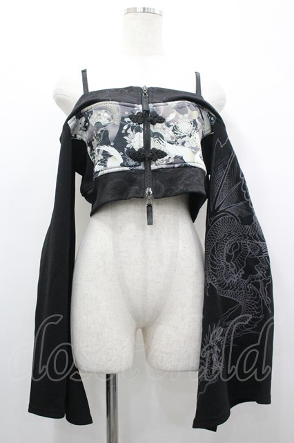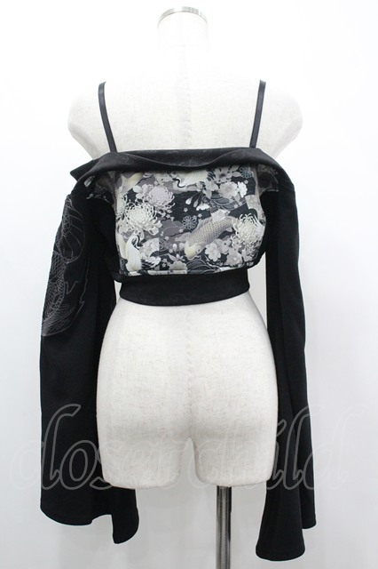 Qutie Frash / 和柄オフショルショートボレロ 黒X白 I-26-04-24-024-QU-TO-SA-ZI [2100060000054667-I-26-04-24-024-QU-TO-SA-ZI]