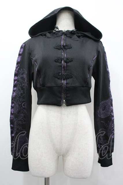 Qutie Frash / チャイナボタンショートパーカー 黒X紫 I-26-04-24-028-QU-TO-SA-ZI