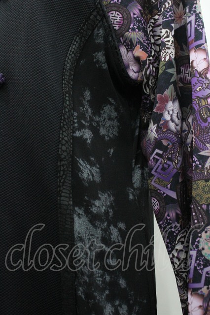 気楡茶閃洸 / チャイナボタンラグランブルゾン 黒x紫 I-26-04-24-030-EL-JA-SA-ZI