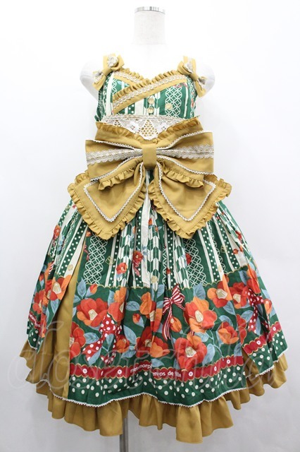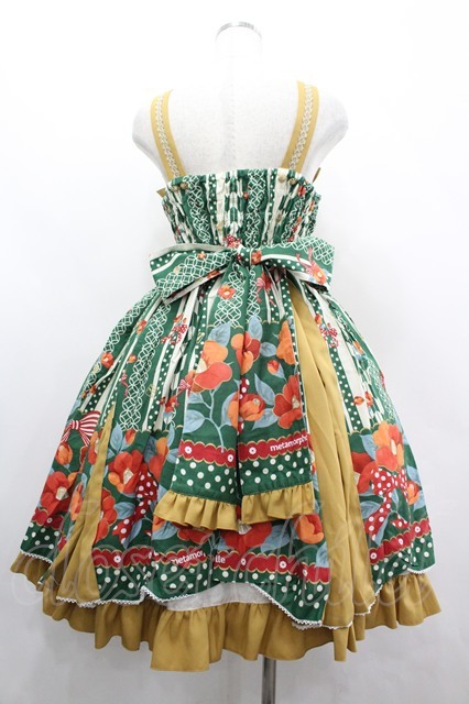 metamorphose / おとめの恋つばき タックジャンパースカート グリーン I-26-04-24-033-ME-OP-SA-ZI