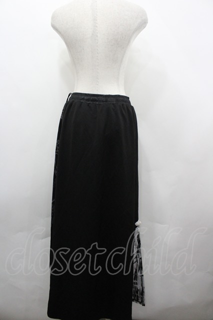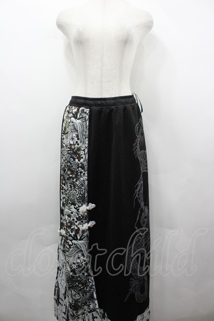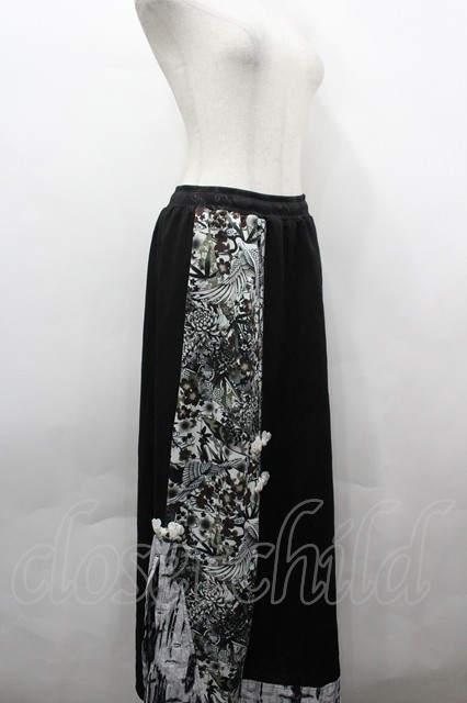 Qutie Frash / 2019プレミアム"白鶴"スリッドスカート 黒X白Xグレー I-26-04-24-052-QU-SK-SA-ZI