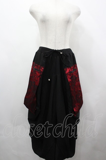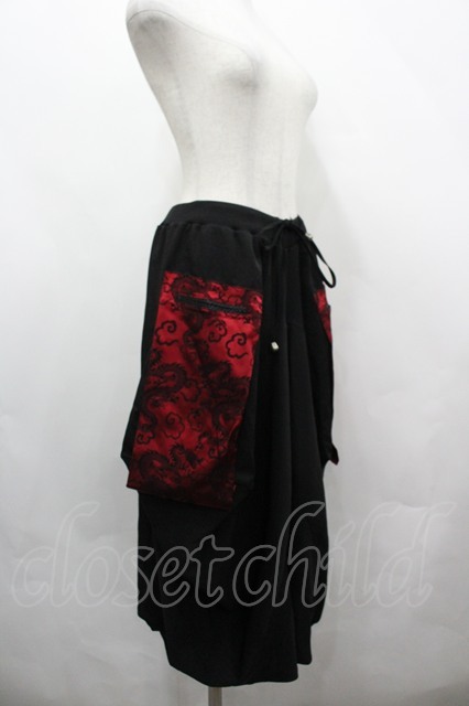 Qutie Frash / 龍ワッペンサルエルパンツ 黒X赤 I-26-04-24-059-QU-PA-SA-ZI [2100060000054656-I-26-04-24-059-QU-PA-SA-ZI]