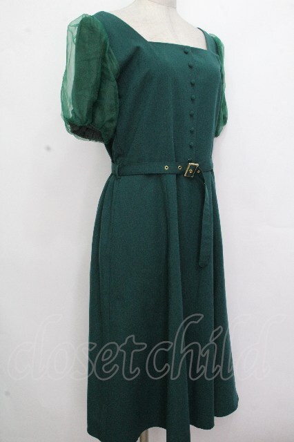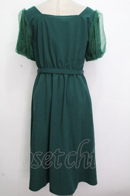 axes femme POETIQUE / パフ袖スクエアネックワンピース グリーン S-26-04-25-1029-AX-OP-AS-ZS