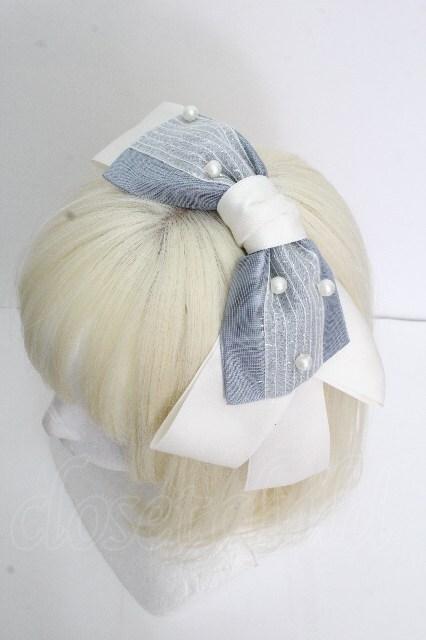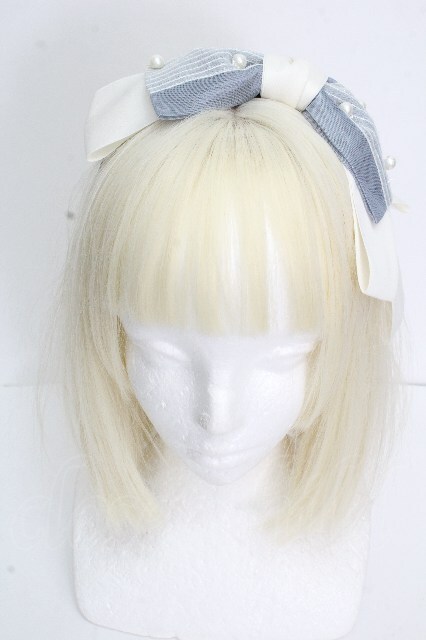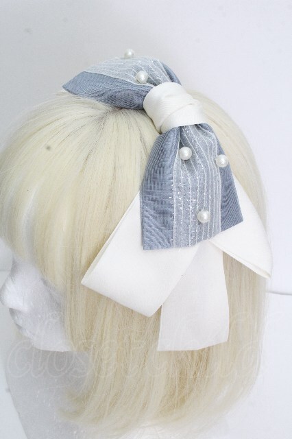 中国ロリータ / リボンカチューシャ サックスx白 S-26-04-26-018-LO-AC-HR-ZS