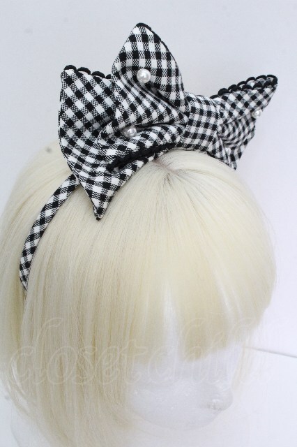 Angelic Pretty / ギンガムカチューシャ 黒x白 S-26-04-26-023-AP-AC-HR-ZS