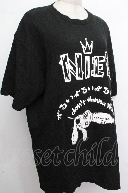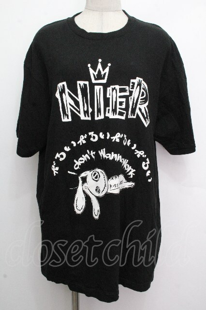 NieR Clothing / NieRちゃんプリントTシャツ 黒x白 S-26-04-26-039-PU-TS-HR-ZS