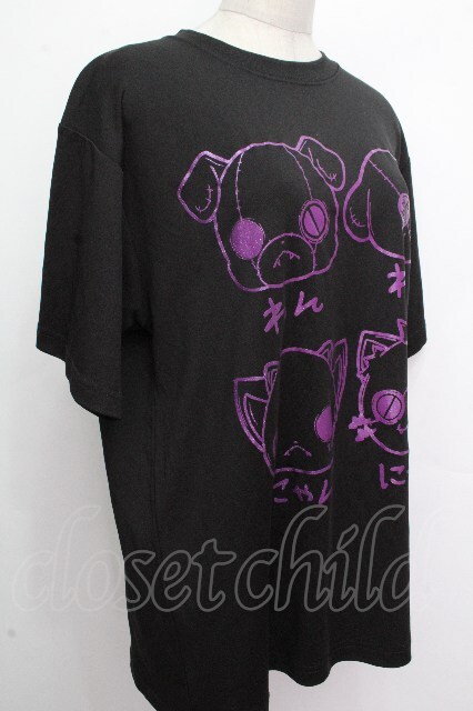 NieR Clothing / NieRちゃんプリントTシャツ 黒x紫 S-26-04-26-040-PU-TS-HR-ZS