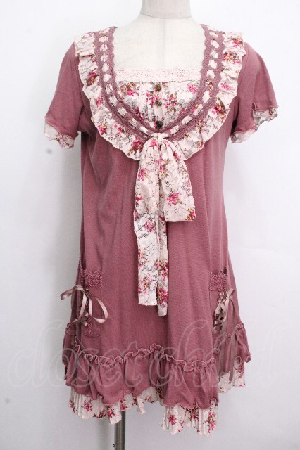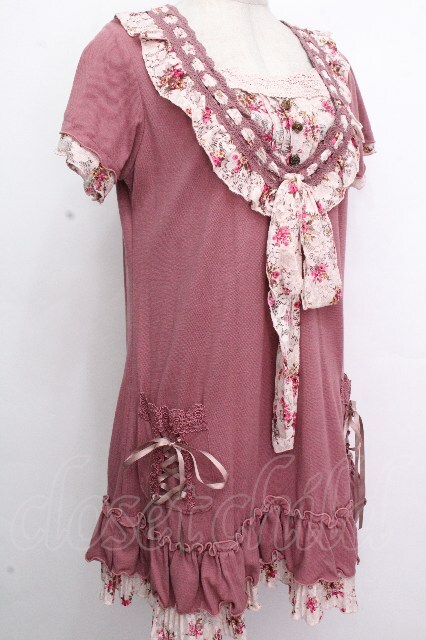 axes femme / 花柄レースブロッキングチュニ ピンク S-26-04-26-041-AX-OP-HR-ZS